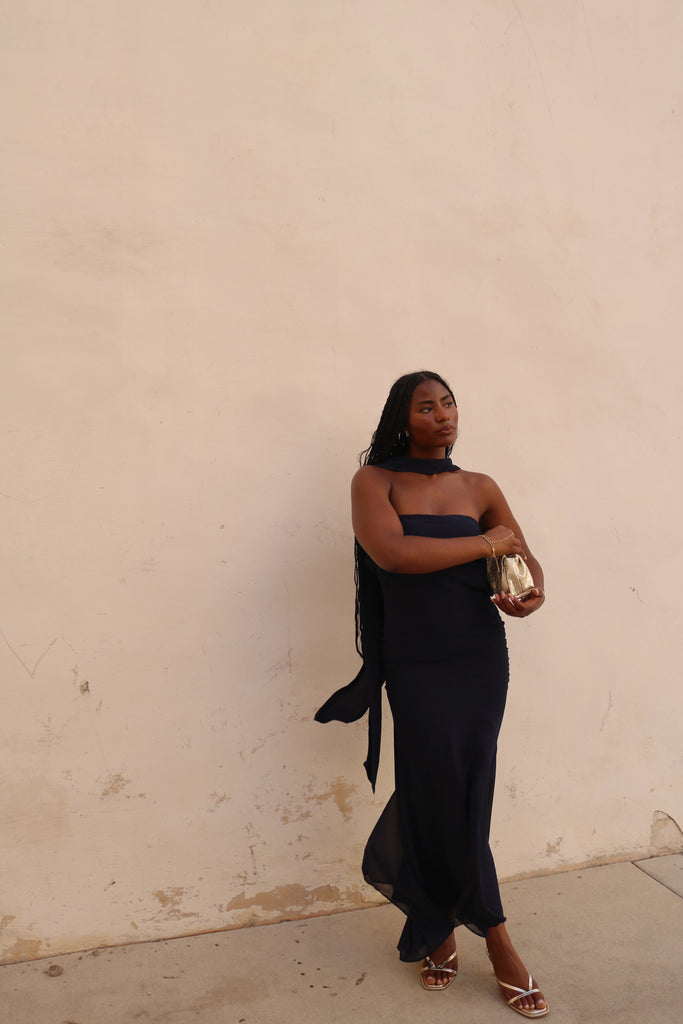 Navy Strapless Scarf dress