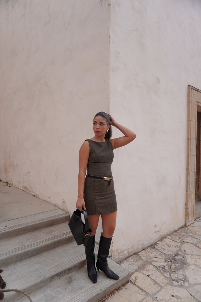 High-Neck Houndstooth Dress