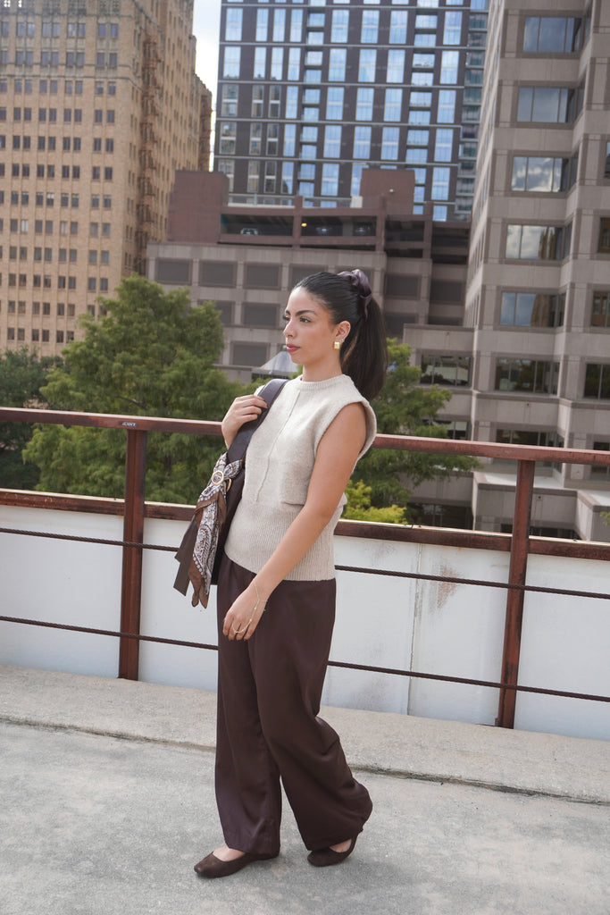 Brown Silk Wide-Leg Trousers